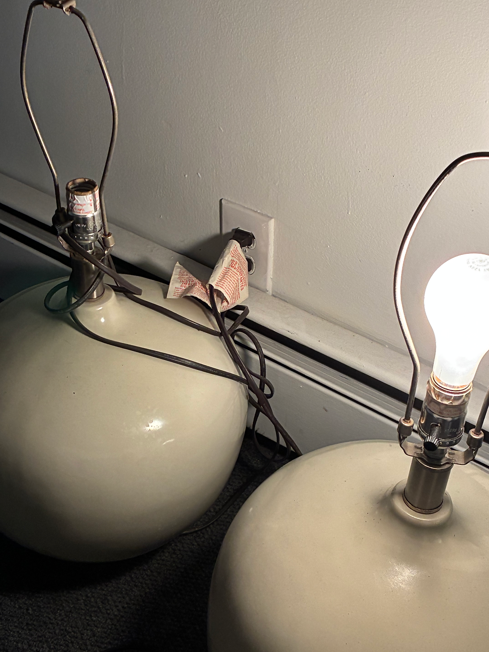 Pair of Large Round Ceramic Table Lamps – Modern Neutral Base – Working Conditio